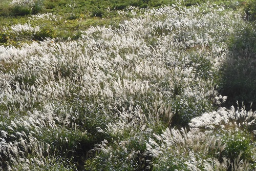 雪が降ればゲレンデとなる天元台は今、ススキの銀の穂波。