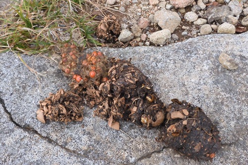 内容物を見てみると、ナナカマド(七竈)の実がそのまま、それからハイマツ(這松)やオオシラビソ(大白檜曽)の松ぼっくりをたくさん口に入れていることが分かります。
