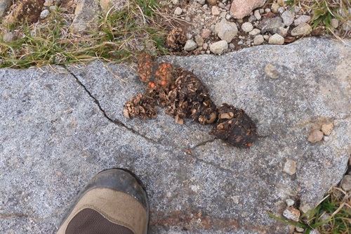 と、ほどなく、登山道上で大きな獣の糞に出くわしました。