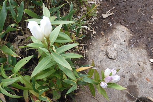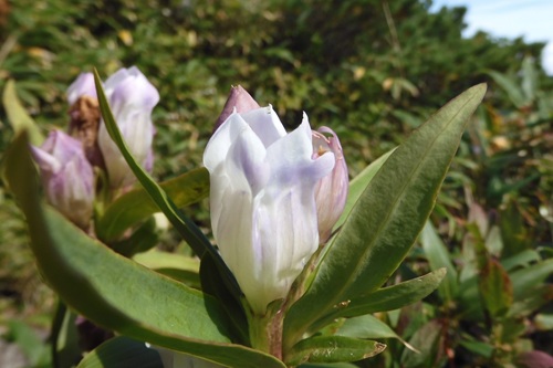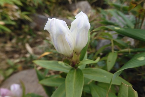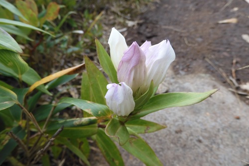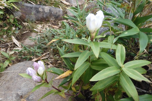 この白いリンドウをひとり愛でていると、ソロもふくめて20人ほどの集団が通りがかって話が弾みました。