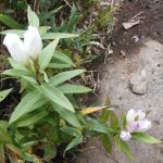 この白種はエゾオヤマリンドウの突然変異と思われますが、白種が自生するのは西吾妻では(筆者の確認した限りでは)縦走路に2箇所だけです。