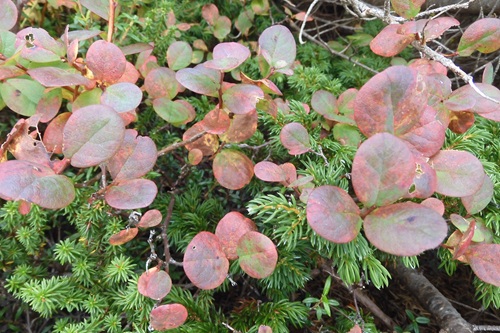 でも、たぶんここからは見えないけれども、クロマメノキ(黒豆木)を代表とするツツジ科の果実(液果)は大量に含まれていたでしょう。今が最盛期ですから。