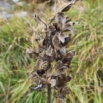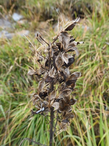コバイケイソウ(小梅蕙草/シュロソウ科シュロソウ属)の花後、果実が飛び散った後。