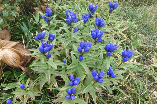 頭頂部にかたまって花をつけるのはオヤマリンドウ(御山竜胆)の特徴ですが、大きさとしてはエゾリンドウよりは少し小さい。