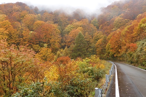 秋ノ宮から泥湯までの13キロの山道は、どこも紅葉真っ盛り。