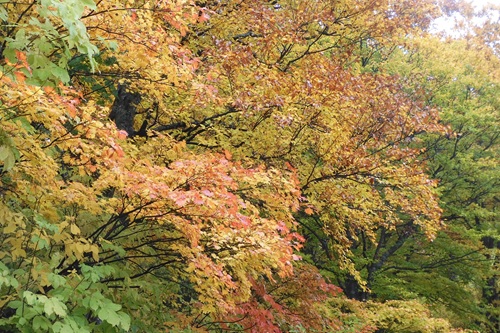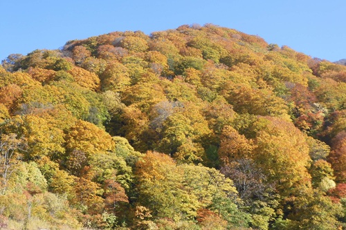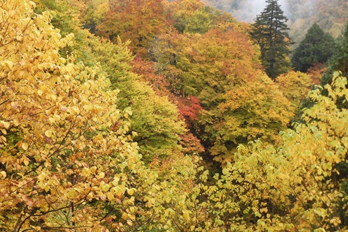 黄色が目立つのはブナ(山毛欅)が多くを占めているからです。