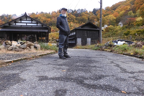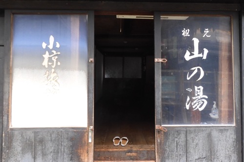 もう1軒は有名な奥山旅館ですが、臨時休業のよう。のちに従業員に聞けば、今はとにかく人手不足で1週間を回せないのだそうで、こうして週に2日程度休みにしてしのいでいるのだとか。