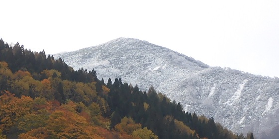 2年前に登った高松岳(1,348メートル)にはもう雪が降ったようでした。