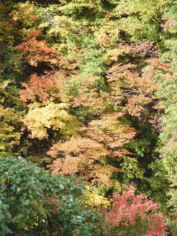 ルーザの森では今が紅葉のピーク、ビューポイントの笊籬橋からのながめもさることながら、あたりはどこも黄色や赤に染まってとてもきれいです。