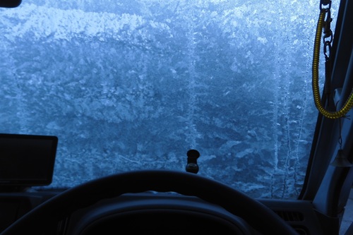 翌朝、30日の外気温はマイナス2℃。クルマのガラスがガチガチに凍っていました(-_-;)。
