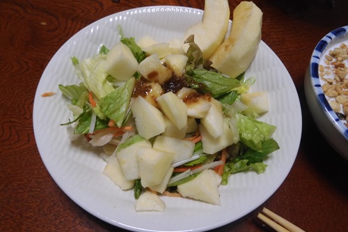 ある朝はシリアルと、生野菜に1個売りだったリンゴ(王林)を粗く刻んで混ぜてサラダに。なかなかのものでした。