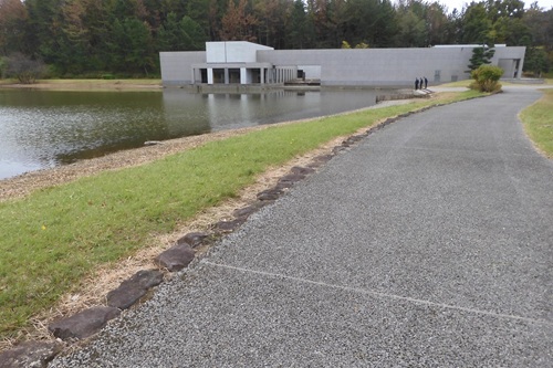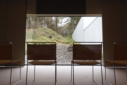 土門拳記念館にはイサム・ノグチが中庭に彫刻とベンチを寄贈、勅使河原宏の庭園デザインも見事というほかなく。