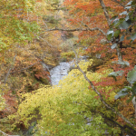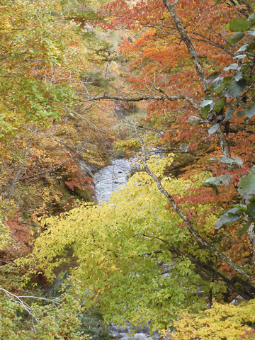 ルーザの森では今が紅葉のピーク、ビューポイントの笊籬(ざる)橋からのながめもさることながら、あたりはどこも黄色や赤に染まってとてもきれいです。