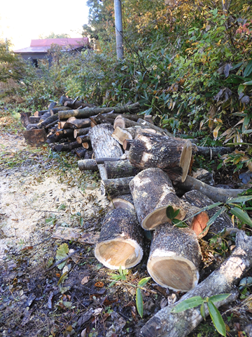 下は、今年でも来年でもなく、再来年の冬以降のための薪の調達。常に、先々が大切なのです。