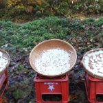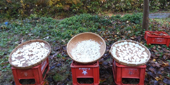 食べきれないものは刻んで、日光に当て、夜には薪ストーブの乾燥した空気で乾かして保存食にしました。