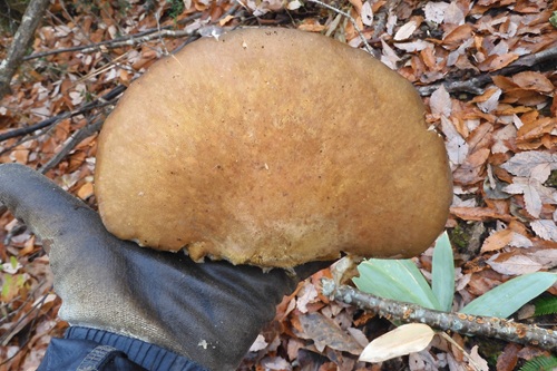 ムキタケ(剥茸)はこんなに大きなものも。直径にして20センチくらい。