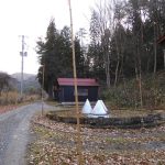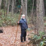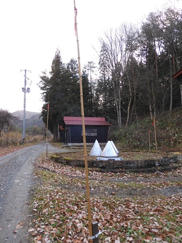 市の除雪車のための目じるし、それから家庭用の除雪機を安全にスムーズに動かすために、竹竿を8カ所立てました。