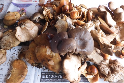 キノコを採る場所は家から歩いて10分ほどのところ、小1時間ほどでこの収穫です。