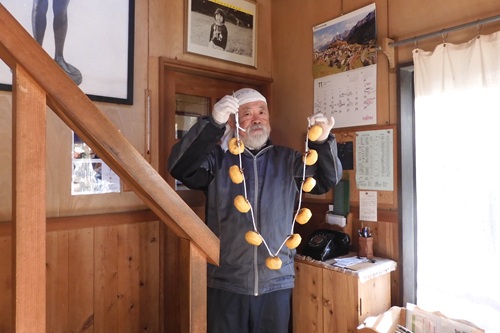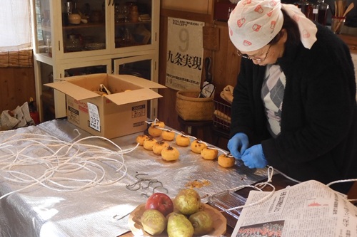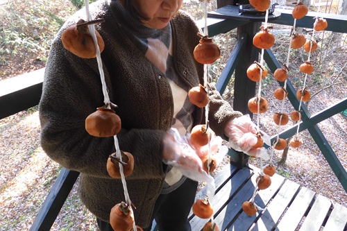こうして2、3日おきに揉むとおいしい干し柿ができるのだとか。