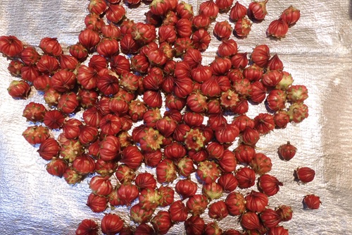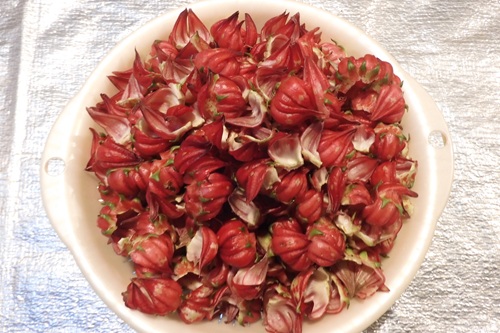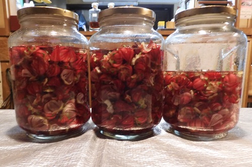 前にはこのローゼルでつくったガーネット色の果実酒ももらっていて、今度は自分でつくったらどうかとのことでした。
