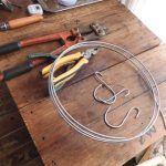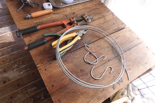 ベランダに干すにはフックがあった方がよかろうと、太い針金(番手♯10。Ø3.2ミリ)をワイヤーカッターで切ってつくりました。