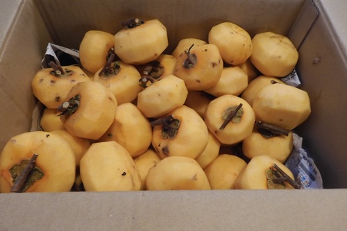 柿はいらないかという声がかかって、取りにゆけば、100個ほどももいで、きれいに軸まで切りそろえて待っていてくれました。