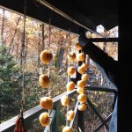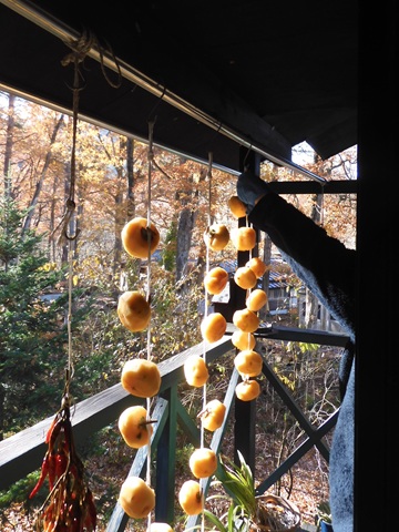以前に柿を干したときには、留守中にベランダまで登ってきたサルに全部やられてしまったこともあったっけ。
