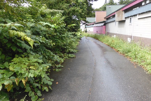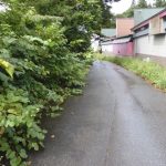 夏場、民地からの樹木がはみ出して、道路の3分の1を占めるまでになっていました。