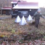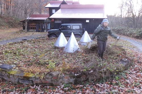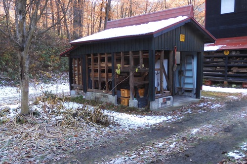 18日朝、雪が積もっていてあわてました。冬への備えはまだほとんど手つかずなのです。