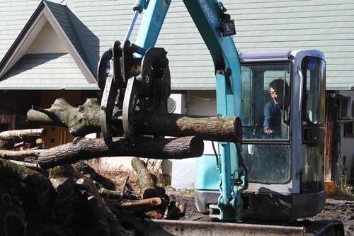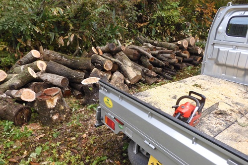 ずっと昔から懇意にしてもらっているアキオさんは電力会社の支障木の伐採もやる方で、その支障木をいただけることに。ありがたいことです。