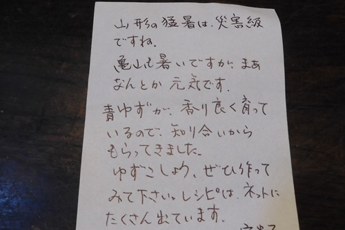 そうしてこの夏場に送ってもらったのが未成熟の青ユズでした。