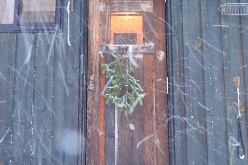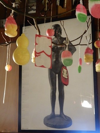自生するミズキ(水木)を野原から切ってきてリビングに据え、相棒とふたりでいつものように飾りつけをしました。