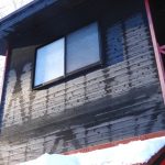 で、XとかIとかの模様が浮き上がるけれども。これは板壁の中に組み込まれている梁とか筋交いとか、柱や間柱です。冷え込みが構造をあらわにするのです。