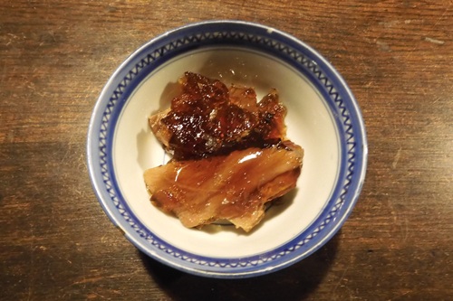 からかい煮を外の冷気で冷やせば、煮汁がやわらかい寒天のようにプルプルする煮こごりと化しています。