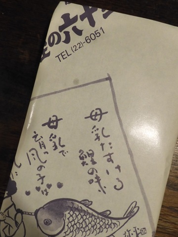自分の母親もそうだったけど、コイには母乳信仰があって、お産後のお乳がよく出るようにと高価なものにもかかわらず口にしていたようです。それが、うま煮の包装紙にも残っていました。