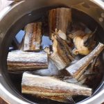 ちがうところはからかいは戻すときに米のとぎ汁を使い、3日くらい水にひたすこと、それからぬめりを取って沸騰するまで煮て、その水は捨て去ることでしょうか。